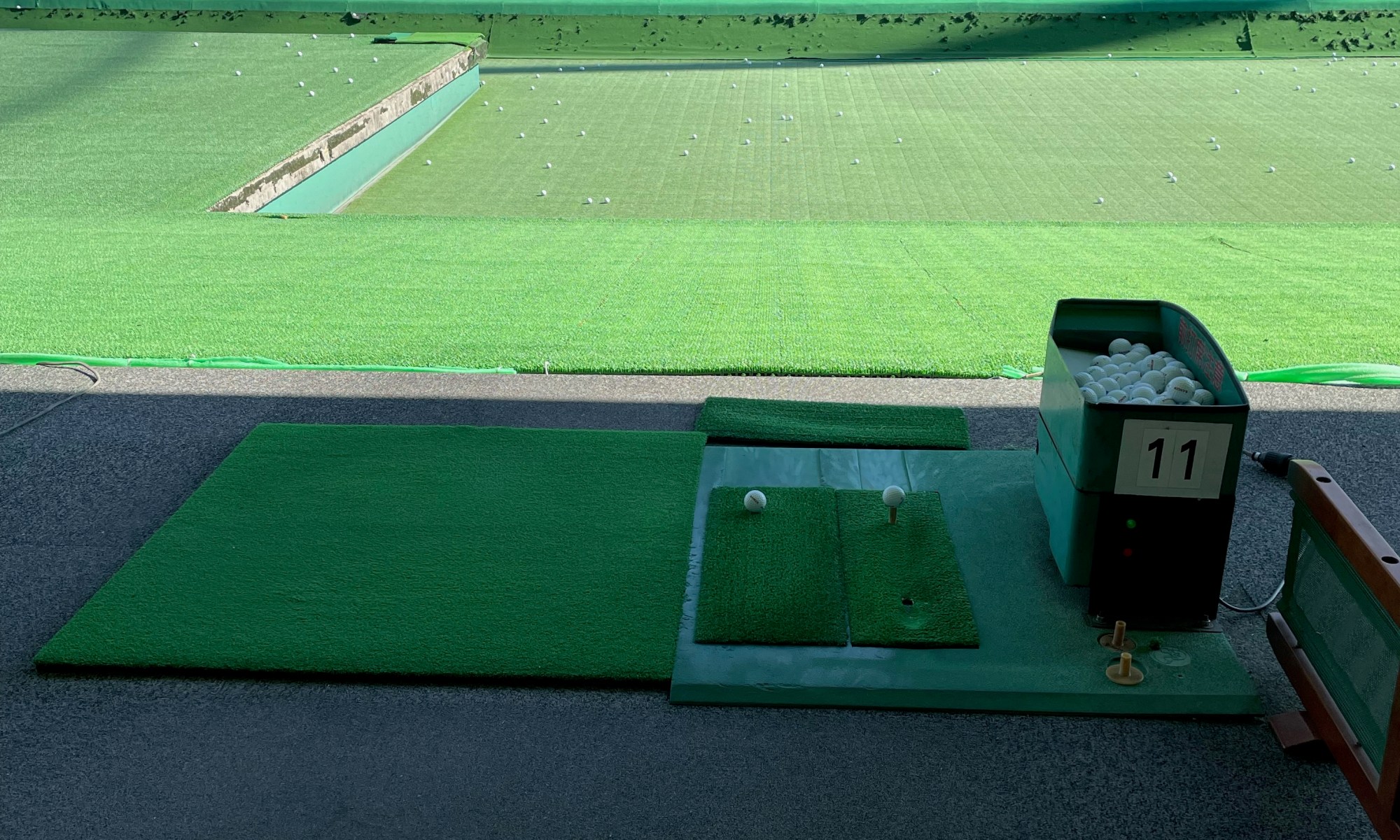 た。行きつけの練習場です、ネットまでの距離が70ヤードと狭いですが