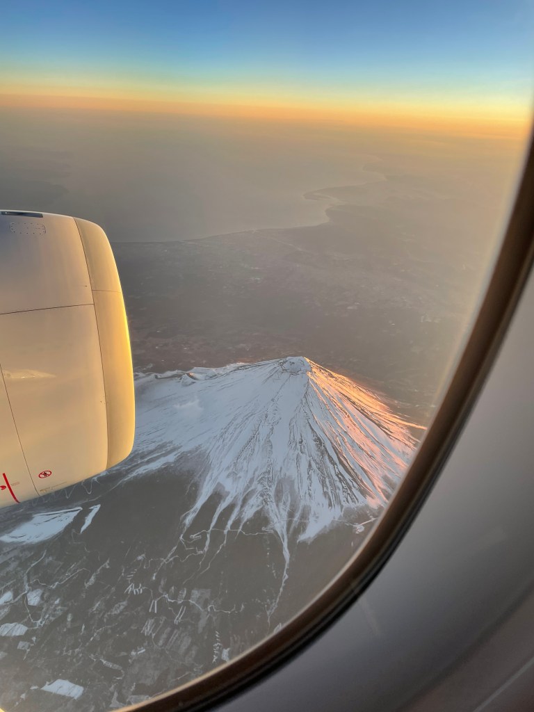 今日は、午後から福岡出張のため移動です。飛行機から富士山火口が見えました。