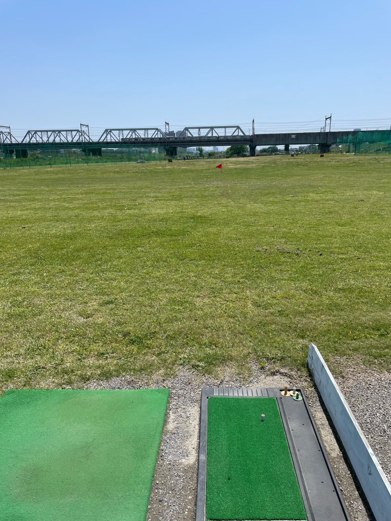 本日の東京巡り? 東京の端多摩川のゴルフ練習場に来ました。行きつけのゴルフ場は距離が70ヤード位しかないので、たまに多摩川の練習場に来ます。