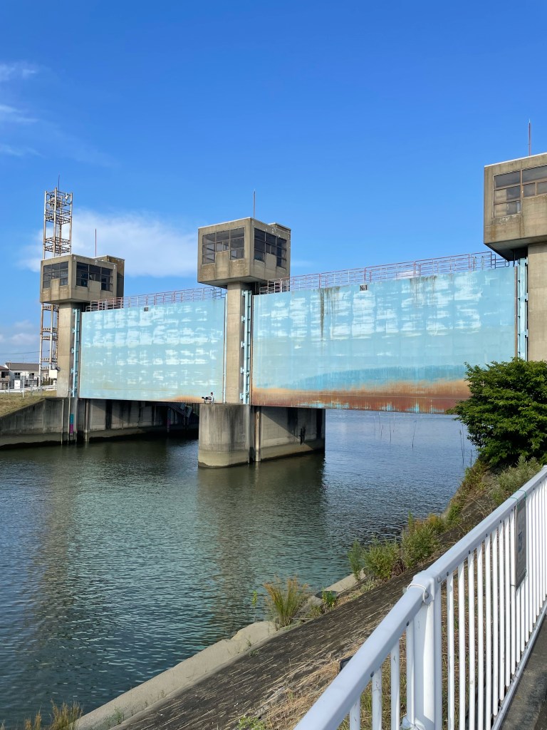 さらに北上すると巨大な水門。ここから水元公園側に分岐してます、昨年秋ブログで書いたマリーナ付近です。