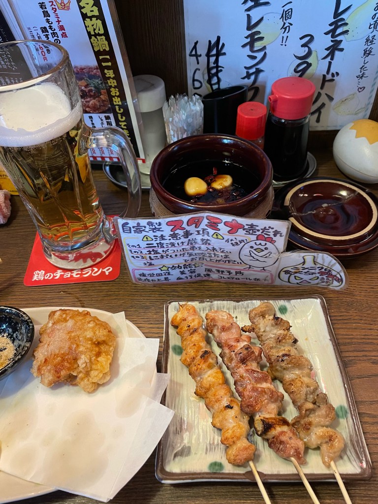 唐揚げや焼き鳥と🍺は最強の組み合わせです。ここの焼き鳥は、自家製のダレ壺に焼き鳥をつけていただきます。当然、2度漬け禁止です😄