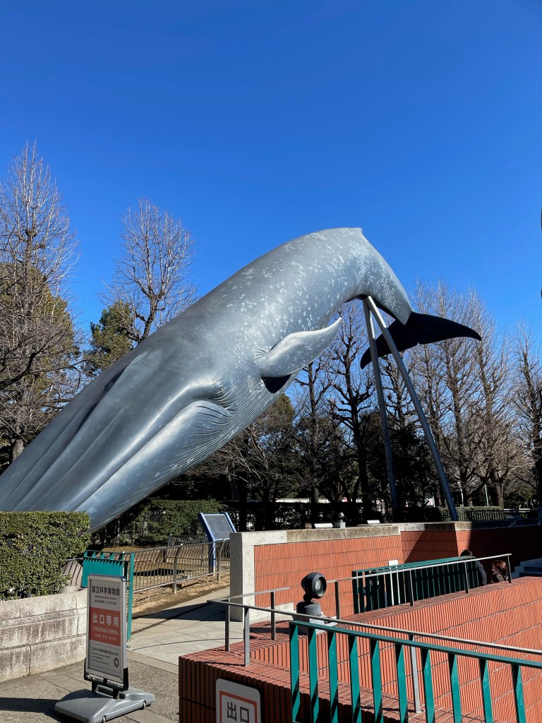 国立科学博物館横に巨大なシロナガスクジラのモニュメントがありました。大阪湾の「よどちゃん」はかわいそうでしたね!