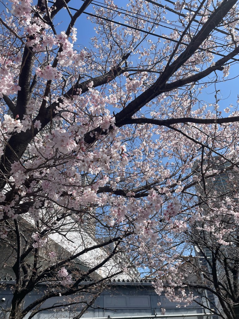 武蔵小杉の桜は、まだ一、二分咲きです