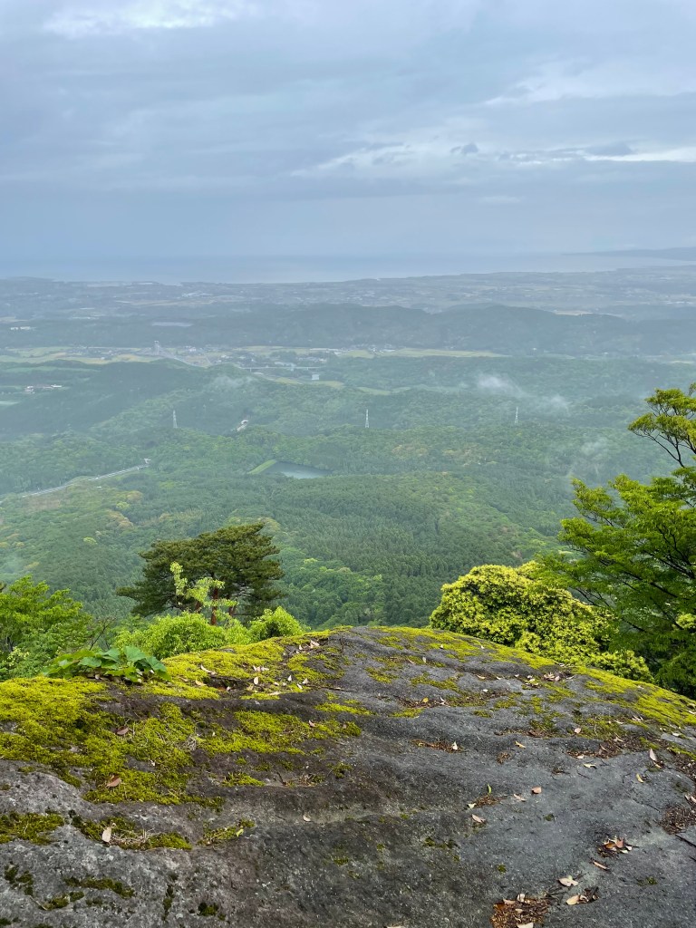 八面山の展望台まで行きました。今日は生憎の雨で誰もいません。雨でも展望台からの眺めは素晴らしく、天気の良い日の絶景が想像されます。