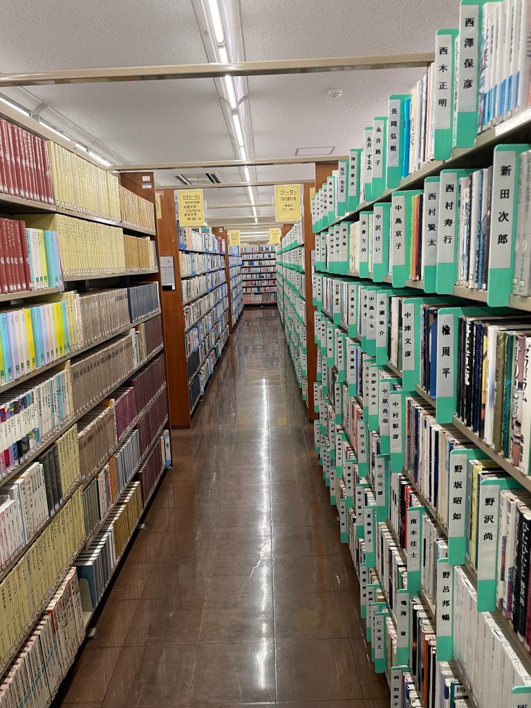 読書席は40席位あり半分くらい空いてます。武蔵小杉の中原区図書館に比べれば、競争率は高くありません。江戸川乱歩の作品を借りて読みました。日本ミステリー小説の父と言っていい江戸川乱歩の作品は、中原区図書館には置いておらず、ずっと探してました。探していた本に巡り合えるのは、図書館めぐりの楽しみの一つです。