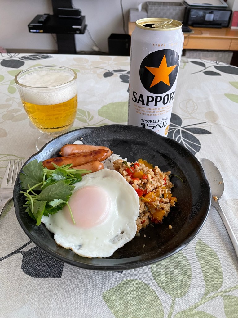 お昼はガパオライスに挑戦 気温37度 真夏のガパオライスでタイ旅行気分です😁