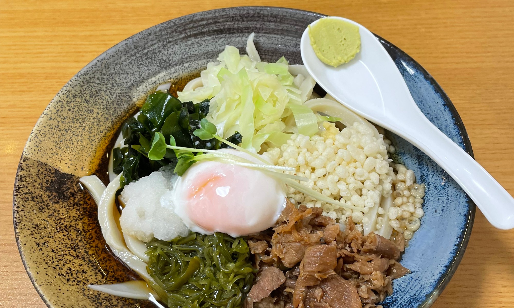 特徴は、とにかく麺が硬いらしい。私は、大分県生まれで福岡に近いためうどんと言えば柔らかうどんが主流で育ちました。しかし、四国にも6年近く住んでいた事もあり、腰のある讃岐うどんも随分味わいました。うどんは、剛柔どちらも御座れの二刀流。この店の一番人気「和光冷やしうどん」を注文しました。