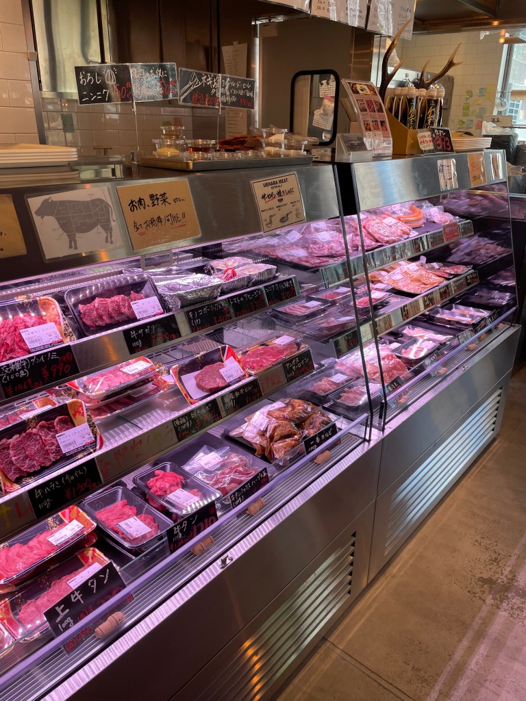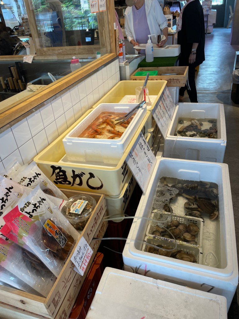 建物の中に肉・野菜・魚貝を買えるマーケットがあり、そこで買った食材を自分達でバーベキュースタイルで楽しむシステムです。