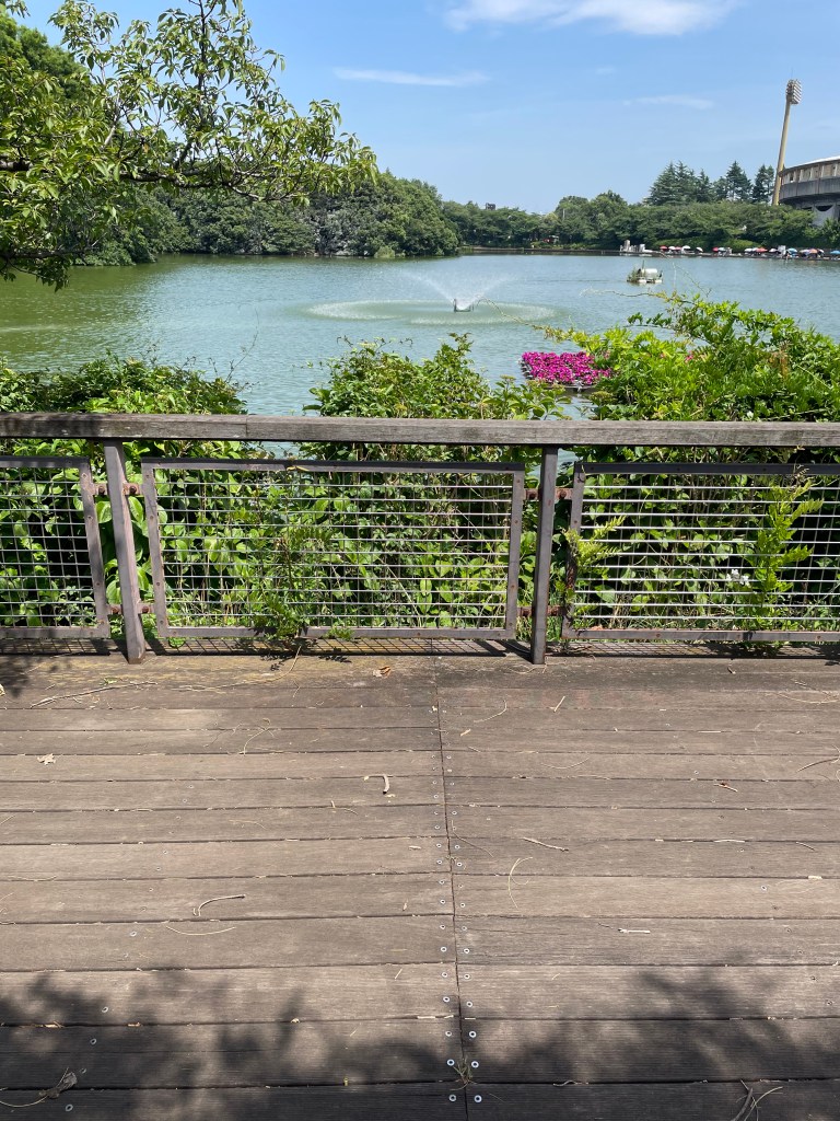 帰りは妖怪をなだめながらゆっくり、休み休みに帰りました。途中、等々力緑地公園の貯水池ほとりのベンチで休憩。汗をびっしょりかいた体に、水面を渡ってくる風が心地良い!(^^)! 妖怪ペッタンと冷静に対峙しようではないか!