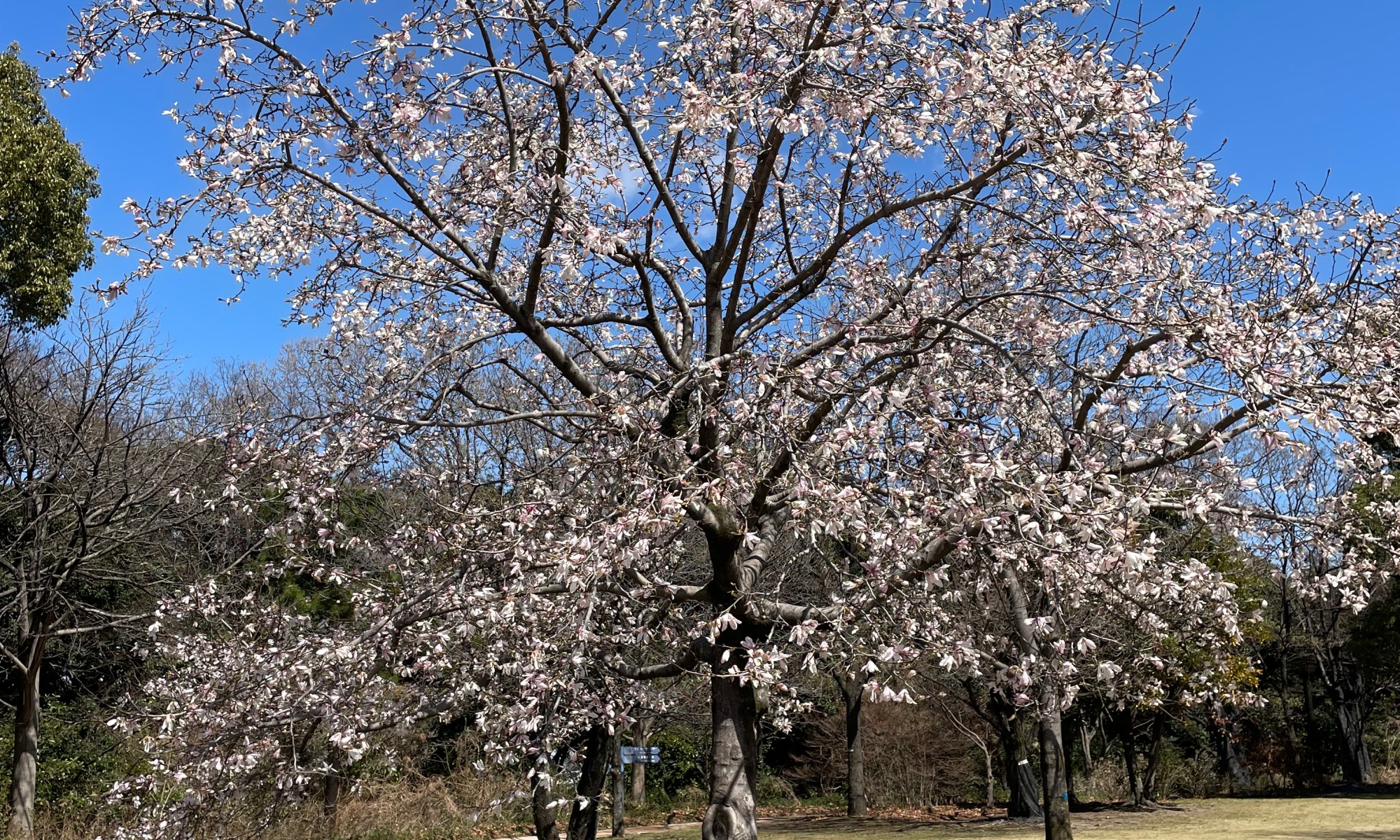 芝生広場にある木に花が咲いてました。桜ではなく、「こぶし」だそうです。こぶしの花は、ツグミが食べに来るそうです(お腹いっぱい食べてって)