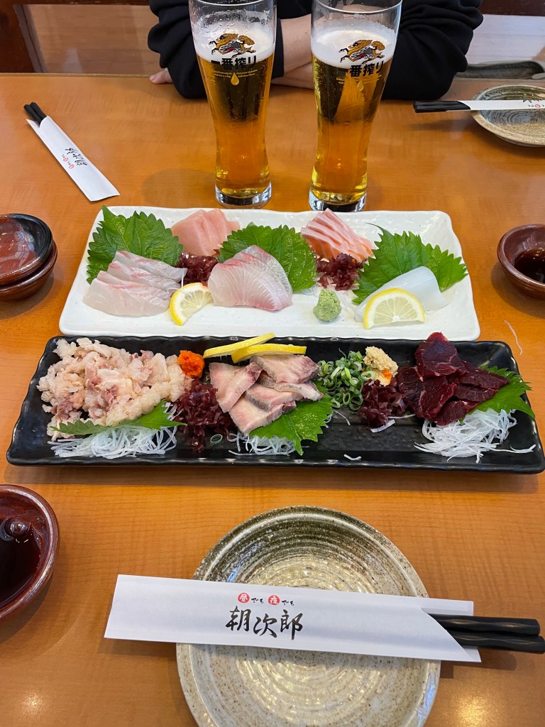 投稿日: 2025年8月13日 投稿者: シゲ長崎 昨日から長崎に来てます。相方のお父さんの初盆なので長崎に帰省です。 長崎は、刺身が美味しいです。新鮮で東京の半分位で食べられます。鯨の刺身を日本酒で一杯 最高です😀 下段は鯨の刺身 鯨の舌は絶品 長崎名物 はとし 締めは、鯛のあら汁と握り 共有: クリックして X で共有 (新しいウィンドウで開きます) X Facebook で共有するにはクリックしてください (新しいウィンドウで開きます) Facebook いいね 読み込み中… 関連