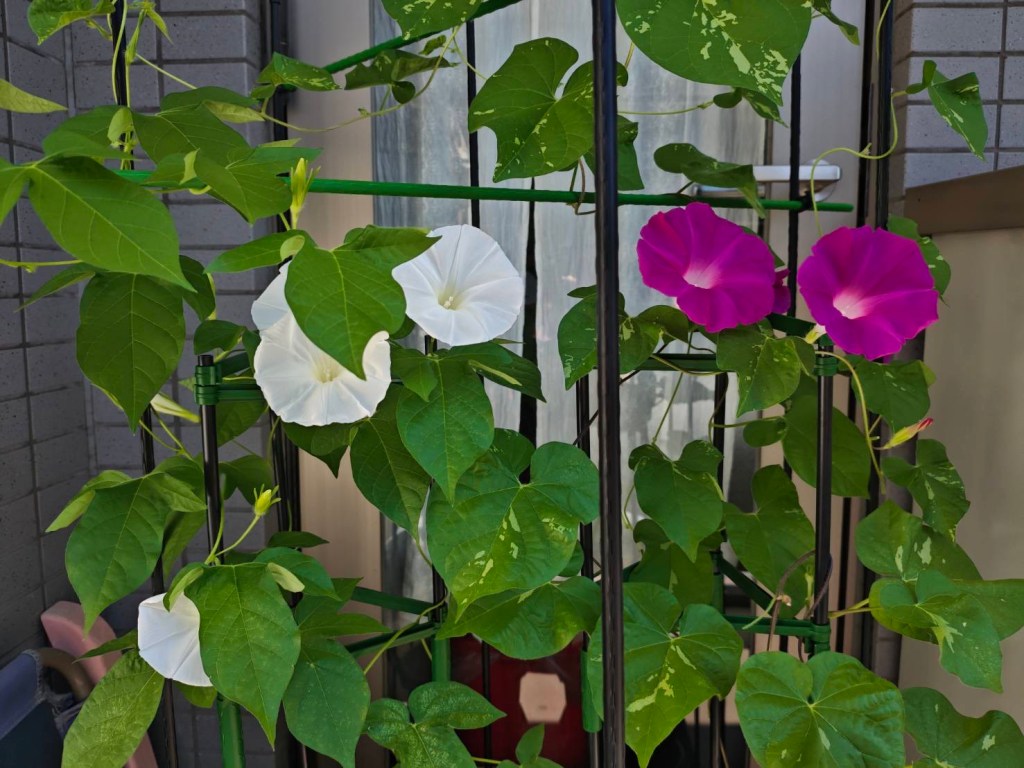 お盆は相方の実家、長崎に帰省しておりましたので、アサガオのお世話は愚息の同居人に頼みました。5日の間アサガオちゃんに、もしもの事があったら承知しないからな🤨 今では子供以上に大切に感じてます😅