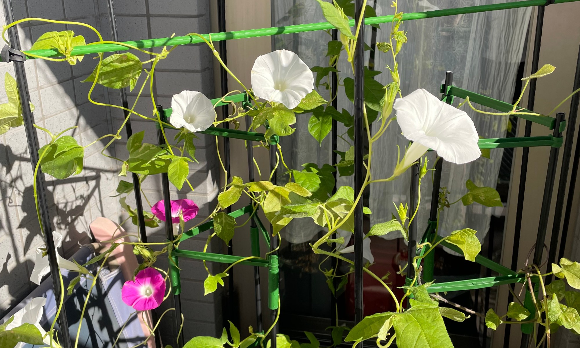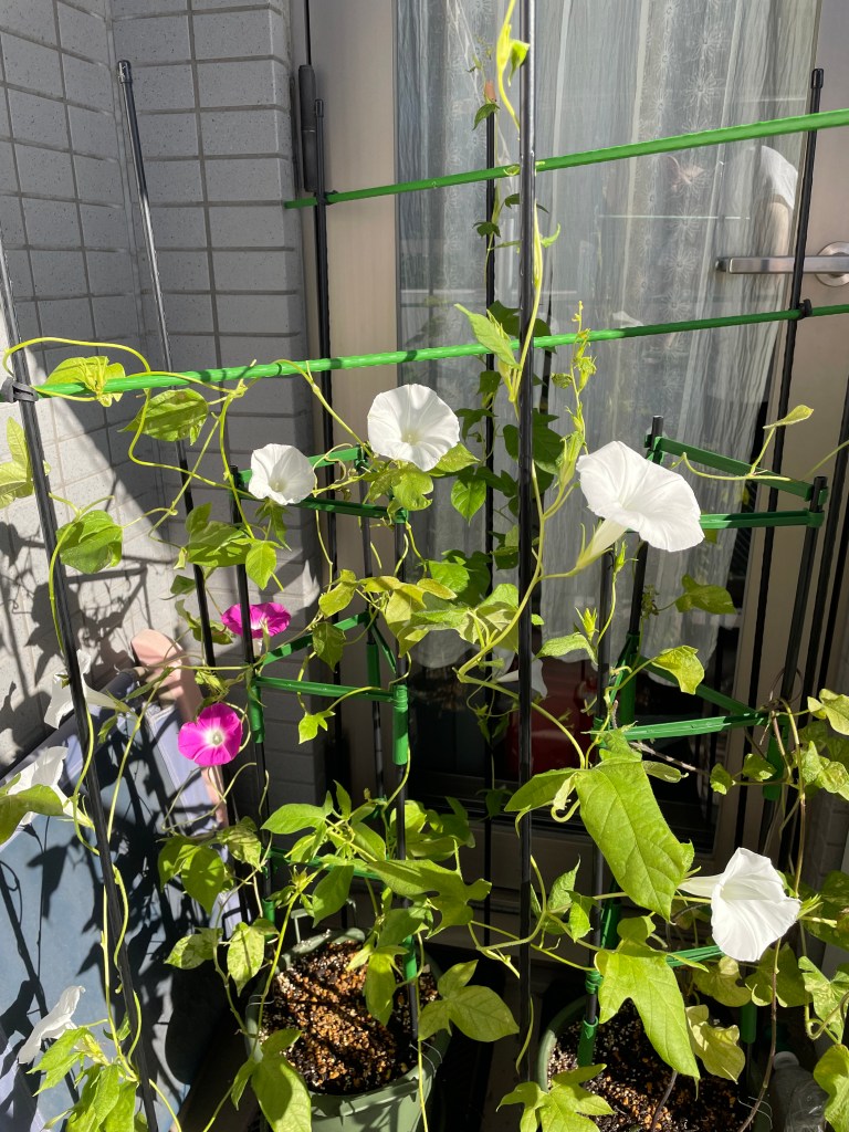今日もサンデー毎日の中の1日 今日の首都圏は真夏日復活の予報 午前中から晴れて気温が高いです。朝、アサガオに水をやる為にベランダに出てみるとアサガオが復活してました。
